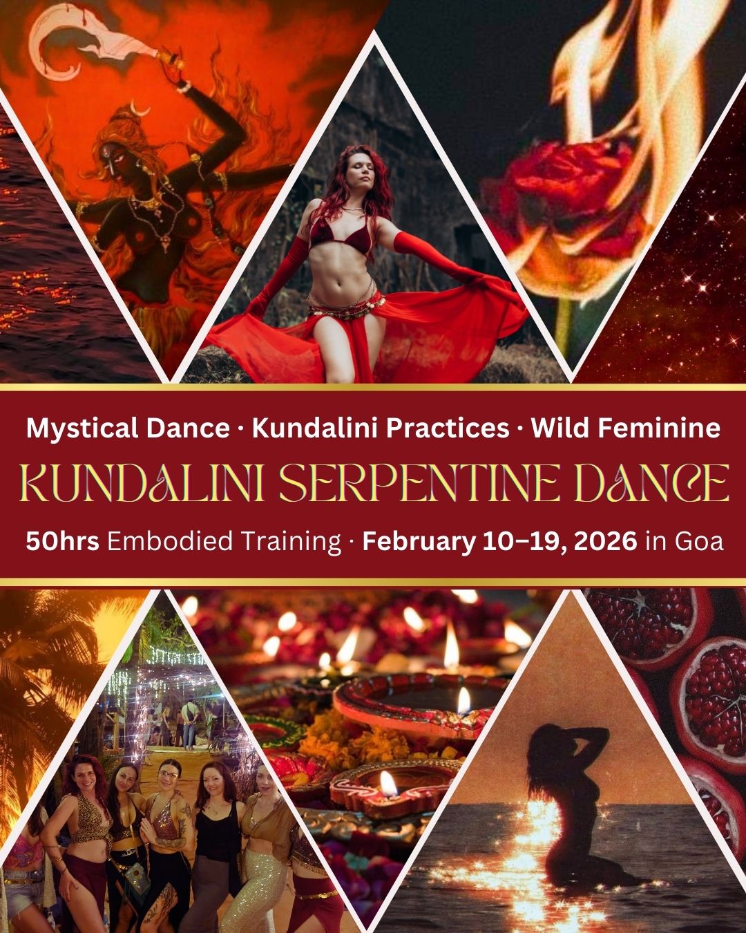 This is a 10-day immersive journey into feminine embodiment, mystical dance, nervous system nourishment and Kundalini Shakti activation held in a sacred, intimate container in Goa.