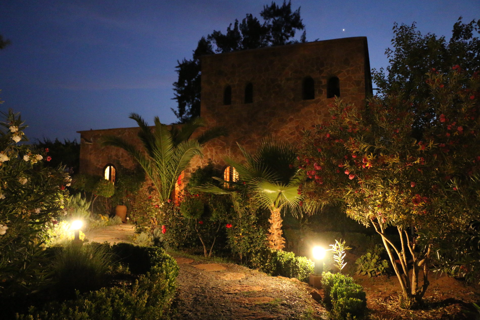 Jardins fleuris, studio de danse, shala, piscine, hamman marocain, cuisine locale.