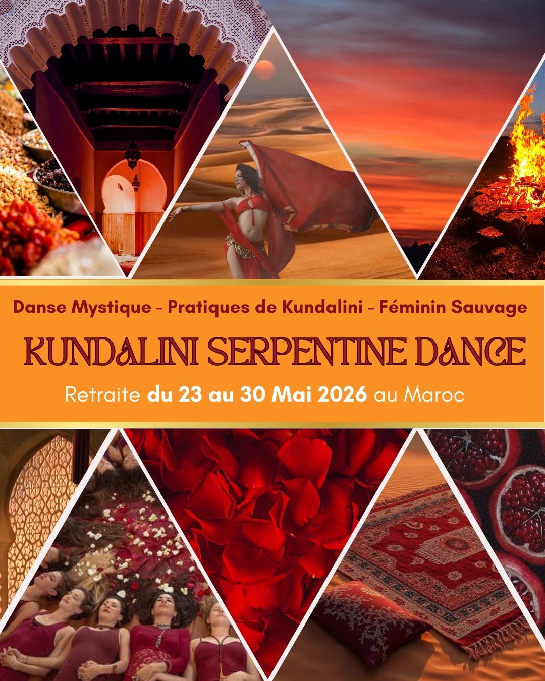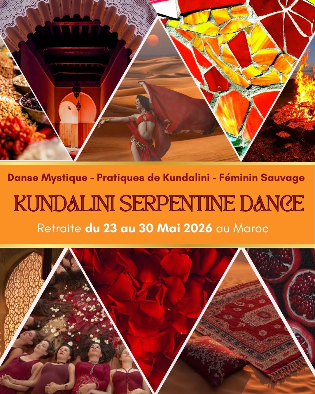 Cette retraite est une invitation à réveiller ta sensualité, ta force, ta fluidité et ton feu profond à travers la Kundalini Serpentine Dance — tout en t’immergeant dans la beauté vibrante et la magie mystique du Maroc.